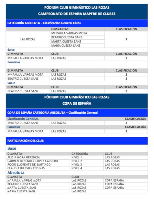 Fuente: Página Web de La Federación Madrileña de Gimnasia