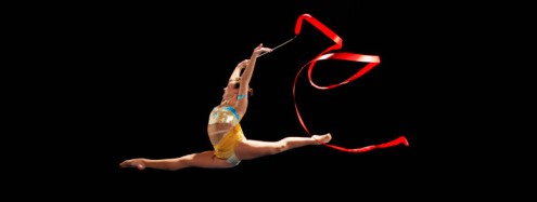 Rhythmic Gymnast Jumping with Ribbon